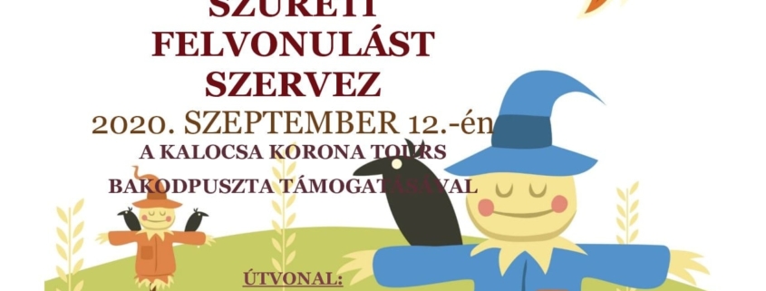 2020. szeptember 13-án, vasárnap du. 15 órai kezdettel szüreti felvonulás veszi kezdetét Kalocsán.