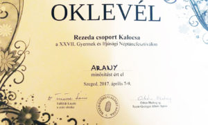 XXVII. Gyermek és Ifjúsági Néptáncfesztiválon Szegeden, arany minősítést szereztek.